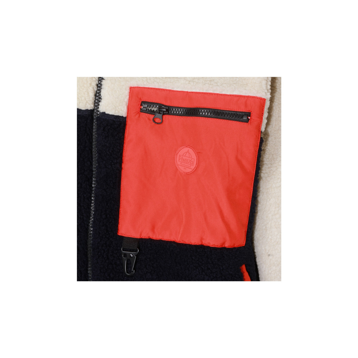 Giacca con zip in tessuto sherpa a tinta unita e inserto tecnico. Patch logo monocolore e dettaglio scalatore sulla tasca frontale laterale. Tirazip personalizzato e portachiavi ricamato. TESSUTO / Composizione 54% Acrilico - 46% Poliestere DETTAGLI 100% Poliestere.